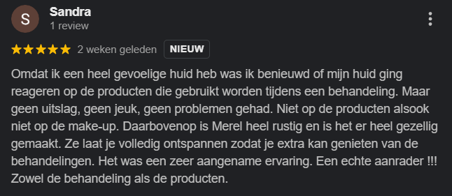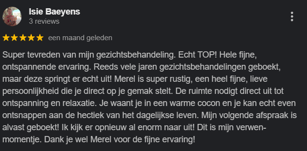 Op deze pagina vindt u reviews van cliënten die mijn begeleiding en behandelingen hebben ervaren. Hun ervaringen geven een betrouwbaar beeld van mijn werkwijze, deskundigheid en de resultaten die binnen de praktijk worden behaald.